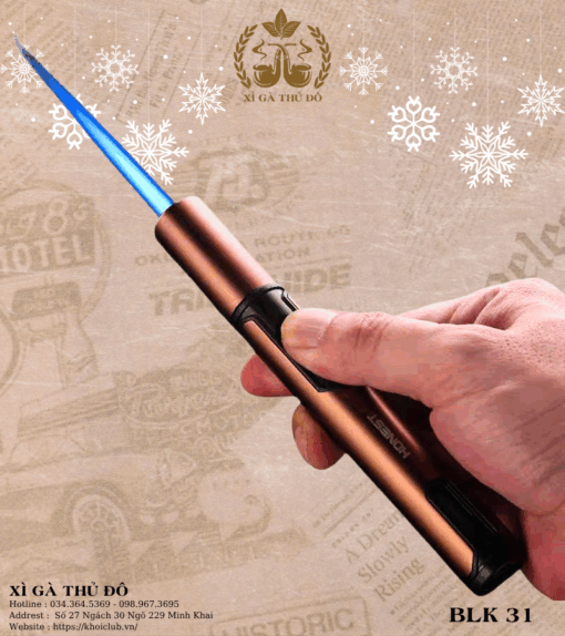 Bật Khò Honest Only BLK 31 gây ấn tượng mạnh ngay từ cái nhìn đầu tiên với hình dáng dài – tròn – gọn gàng, tựa như một cây bút kim loại cao cấp. Thân bật lửa được hoàn thiện từ hợp kim nhôm cao cấp, phủ sơn tĩnh điện mịn, đem lại cảm giác mát tay và chắc chắn khi cầm nắm.