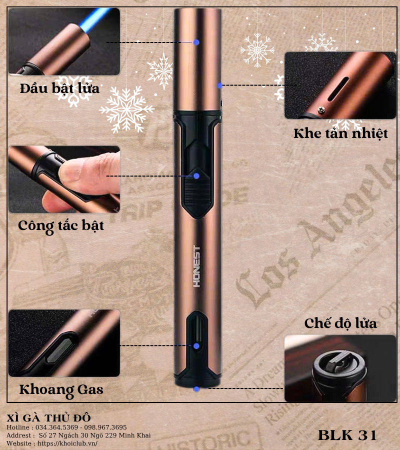 Tuy có kích thước gọn gàng, Bật Khò Honest Only BLK 31 vẫn tích hợp đầy đủ các yếu tố cần thiết cho một chiếc bật lửa cao cấp: