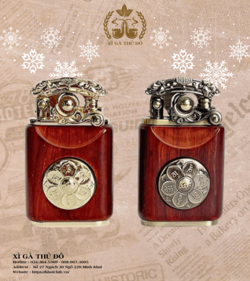 Giới thiệu Bật Lửa Gỗ Kèm Hoa Văn Kim Loại Cao Cấp