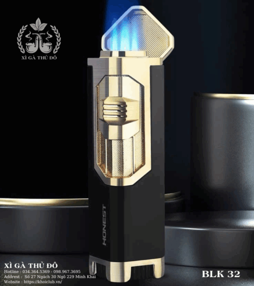 Bật Lửa Khò Cigar FlameCraft BLK32 sở hữu thiết kế tinh xảo, hiện đại, kết hợp giữa màu đen nhám và các chi tiết kim loại ánh vàng, đỏ hoặc xanh dương đầy nổi bật. Tổng thể bật lửa mang phong cách mạnh mẽ, sang trọng, thể hiện đẳng cấp của người sử dụng. Chất liệu kim loại cao cấp không chỉ tạo cảm giác chắc tay mà còn chống va đập, chống xước tốt – lý tưởng cho cả sử dụng cá nhân lẫn làm quà tặng cao cấp.