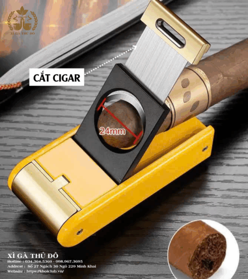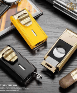 Sản phẩm tích hợp hai tính năng tiện ích: khò lửa mạnh mẽ và dao cắt xì gà đường kính 24mm, mang đến trải nghiệm hoàn hảo từ bước chuẩn bị đến khi thưởng thức điếu xì gà.
