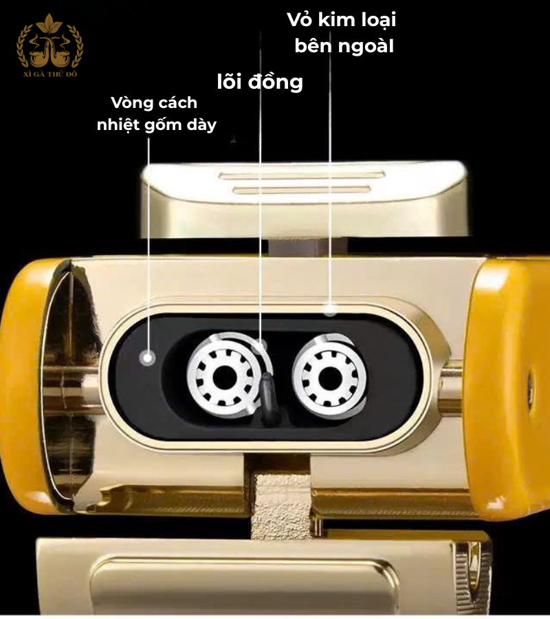 Vòng gốm cách nhiệt dày giúp hạn chế truyền nhiệt ra vỏ ngoài, đảm bảo an toàn khi sử dụng.