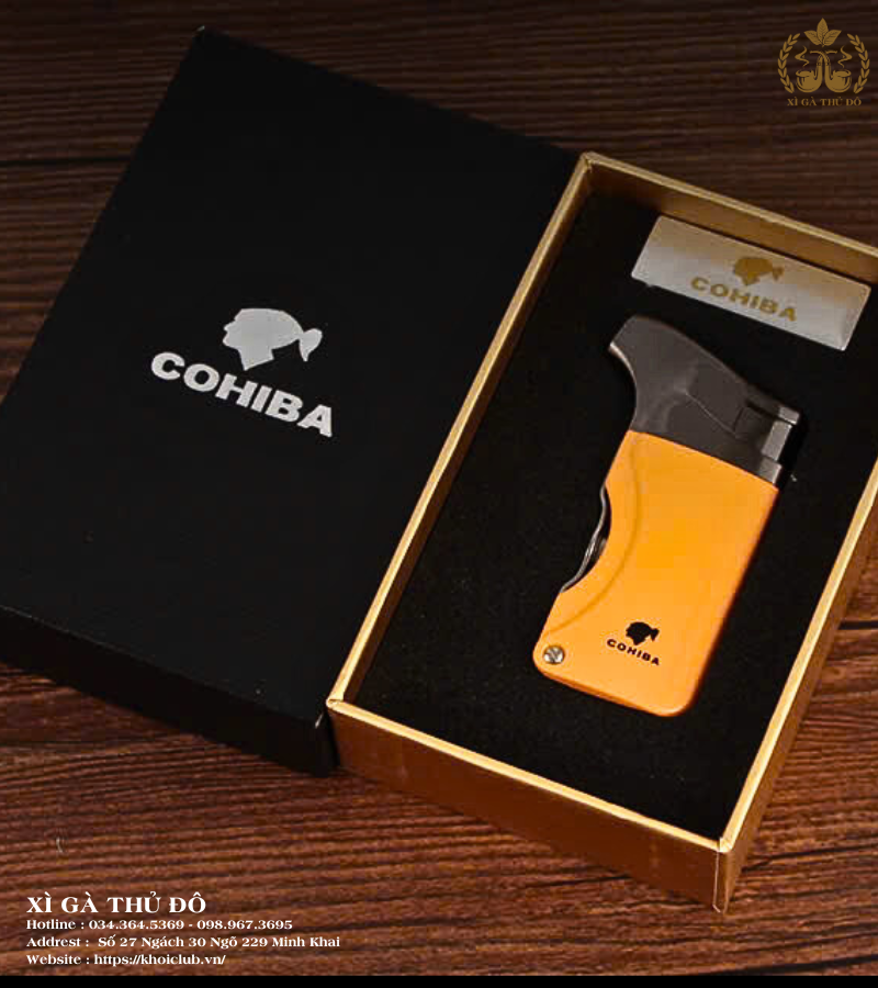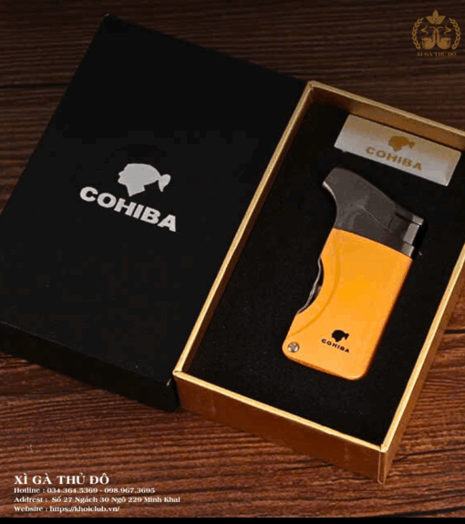 Bật Lửa Khò Cohiba Type Yello gây ấn tượng mạnh mẽ ngay từ cái nhìn đầu tiên với sắc vàng cam đặc trưng – màu nhận diện kinh điển của thương hiệu Cohiba. Thiết kế vuông vắn, đường bo nhẹ tay, đem lại cảm giác cầm chắc chắn và vừa vặn. Mặt trước được khắc logo đầu người đặc trưng của Cohiba một cách tinh tế, toát lên vẻ sang trọng, lịch lãm nhưng vẫn đậm chất nam tính. Bật lửa được đóng gói trong hộp cao cấp, rất phù hợp để làm quà tặng cho người yêu xì gà hoặc sưu tầm cá nhân.