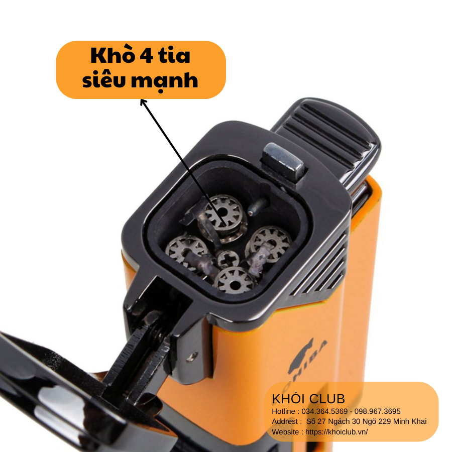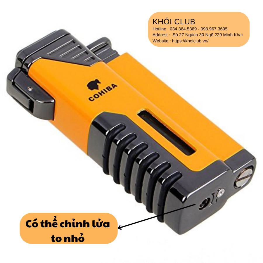 Bật Lửa Khò Xì Gà 4 Tia COHIBA thương hiệu COHIBA chuyên dụng sử dụng khí butan, bạn có thể châm xì gà bất cứ nơi đâu với bật lửa khò tia siêu mạnh.