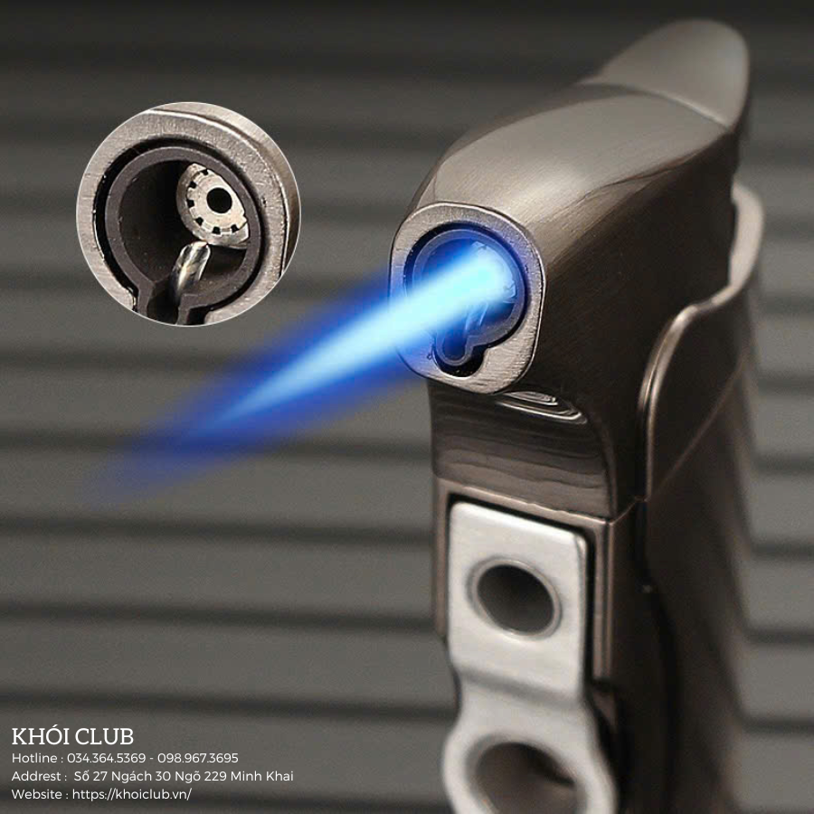 Khò lửa được thiết kế với kiểu dáng hiện đại, dễ dàng cầm nắm. Sản phẩm sử dụng công nghệ khò lửa mạnh với 1-3 tia lửa, giúp châm xì gà nhanh chóng, ngay cả trong điều kiện có gió.