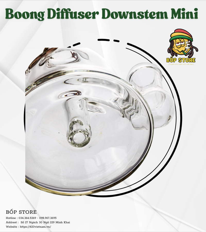 Ngoài ra, chất liệu thủy tinh dày dặn, trong suốt không chỉ mang lại cảm giác sang trọng mà còn giúp người dùng dễ dàng quan sát quá trình lọc khói bên trong. Đây là yếu tố khiến Boong Diffuser Downstem Mini trở thành sản phẩm vừa đẹp mắt vừa thực tế.