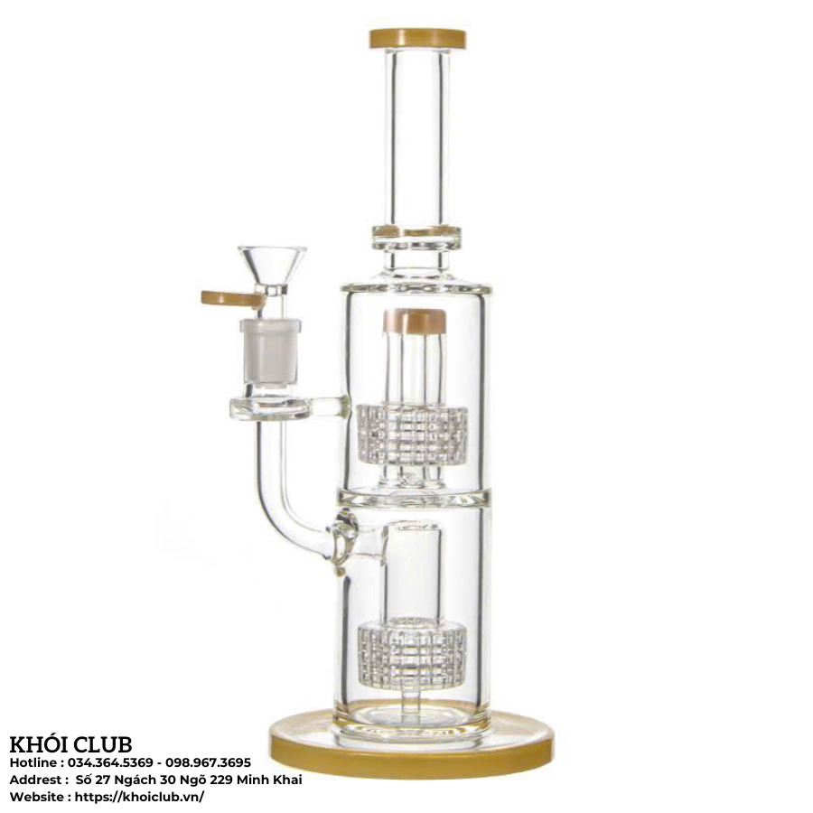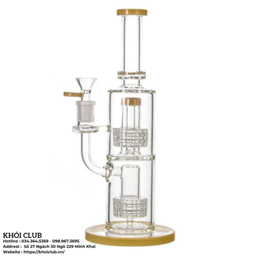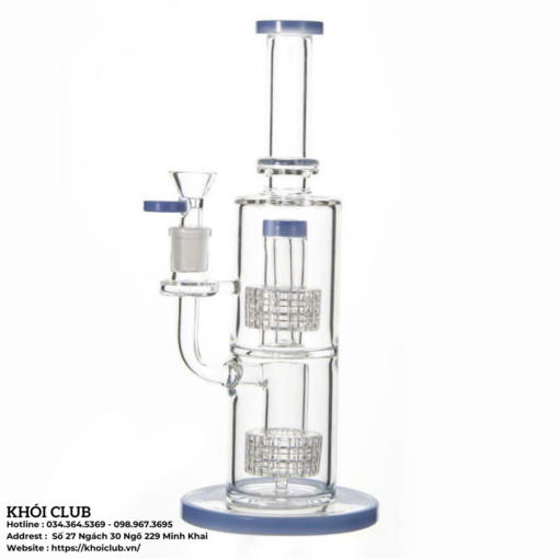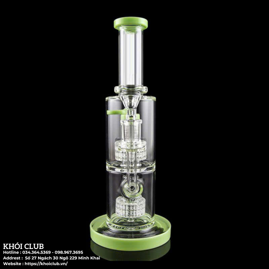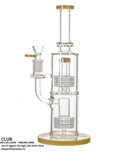 Boong Thủy Tinh Hookahs Double Stereo là sản phẩm cao cấp với thiết kế độc đáo và khả năng lọc khói hiệu quả nhờ vào hệ thống hai tầng lọc stereo. Dưới đây là các chi tiết cụ thể về sản phẩm: