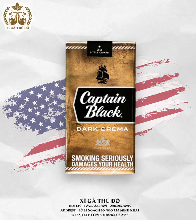 Captain Black là thương hiệu nổi tiếng toàn cầu với hơn 80 năm kinh nghiệm trong lĩnh vực sản xuất thuốc lá cuốn. Dòng Dark Crema được chế tác với sự tỉ mỉ trong từng khâu sản xuất, đảm bảo từng điếu thuốc đều đạt chuẩn chất lượng cao nhất. Đây là dòng sản phẩm được đánh giá cao bởi cả người dùng lâu năm lẫn người mới bắt đầu thưởng thức.