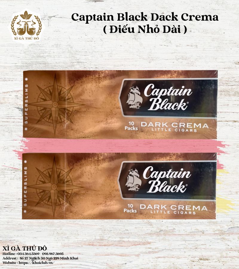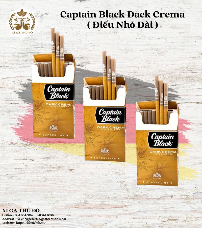 Captain Black là thương hiệu lâu đời của Mỹ, nổi tiếng với các sản phẩm thuốc sợi, cigarillo và cigar mini chất lượng cao. Trong đó, Captain Black Dark Crema điếu nhỏ dài là một trong những phiên bản bán chạy nhất nhờ sự cân bằng giữa hương ngọt, độ nhẹ vừa phải và trải nghiệm hút mượt mà.