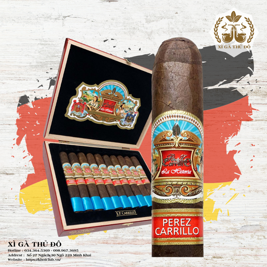 - Thiết kế hộp gỗ sang trọng: Hộp cigar La Historia được làm từ gỗ cao cấp với họa tiết nghệ thuật đầy màu sắc, tôn vinh lịch sử và di sản của thương hiệu EP Carrillo.