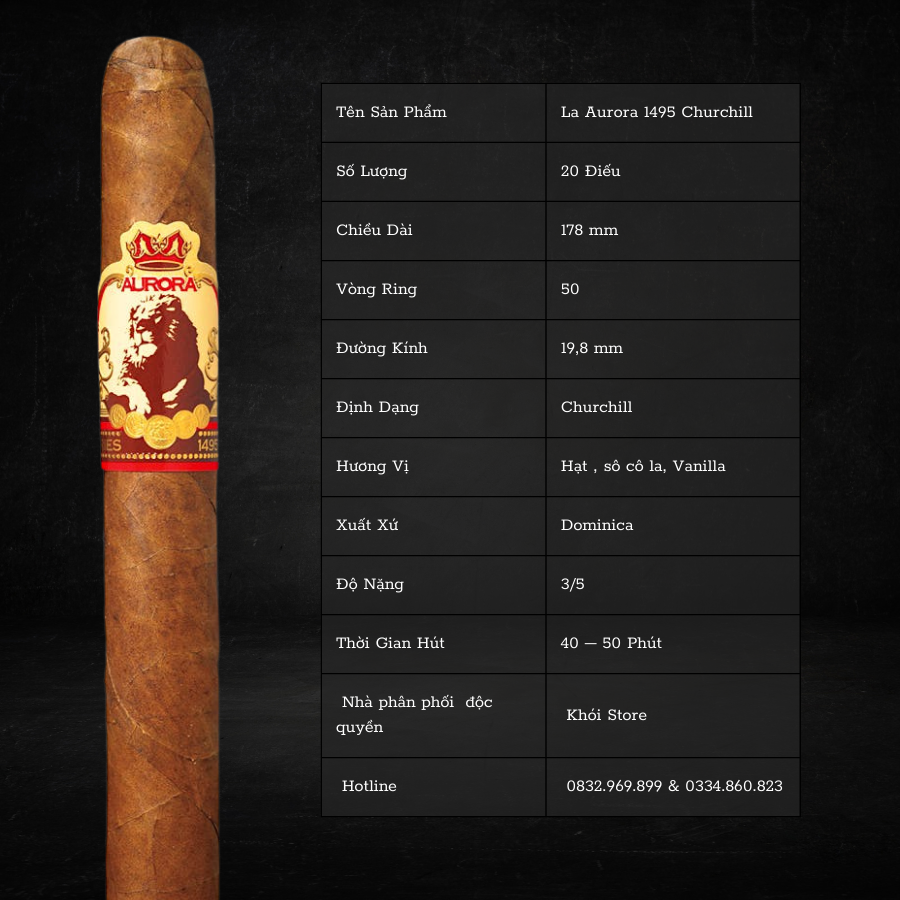 La Aurora 1495 Churchill là một loại xì gà cao cấp ở một trong những định dạng phổ biến và rộng rãi nhất.