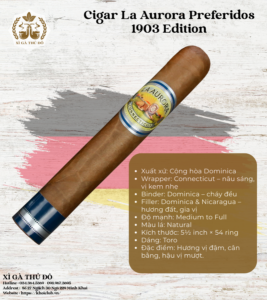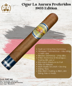 - Quà Tặng Đẳng Cấp: Với bao bì sang trọng và danh tiếng lịch sử, Cigar La Aurora Preferidos 1903 Edition là món quà hoàn hảo cho các dịp đặc biệt, thể hiện sự tinh tế và đẳng cấp của người tặng.