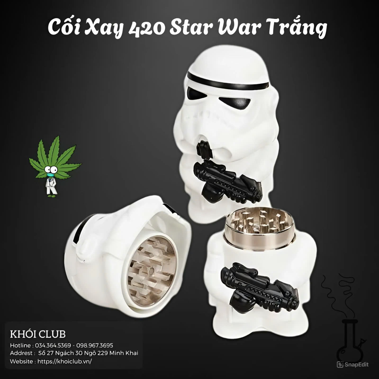 Cối Xay 420 Star War Trắng là một sản phẩm thuộc dòng cối xay thuốc lá hoặc các loại thảo mộc khác, có thiết kế độc đáo và chất lượng cao. Với màu trắng tinh tế và các chi tiết thiết kế lấy cảm hứng từ vũ trụ, sản phẩm này thường thu hút sự chú ý nhờ vào vẻ ngoài nổi bật và hiện đại.
