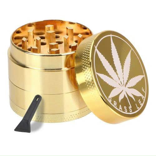 Cối xay kim loại Grass Leaf ( 3 tầng ) với 3 tầng và 4 lớp được phân chia thành các phần rõ ràng để tối ưu hóa quá trình xay thảo dược: