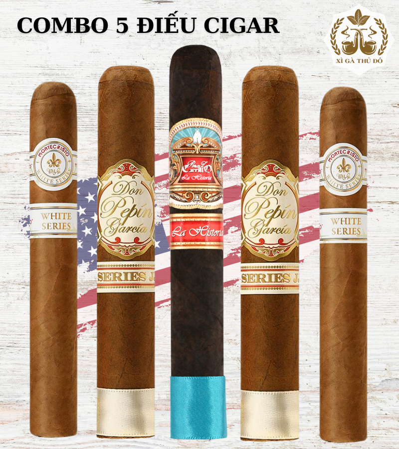 Combo 5 Điếu Cigar Cao Cấp này là sự lựa chọn tuyệt vời dành cho những ai muốn trải nghiệm sự phong phú của cigar cao cấp. Với sự kết hợp giữa Montecristo White Series, Don Pepin Garcia Series JJ và La Historia by E.P. Carrillo, combo này không chỉ mang đến hương vị đa dạng mà còn là biểu tượng của sự đẳng cấp và tinh tế.