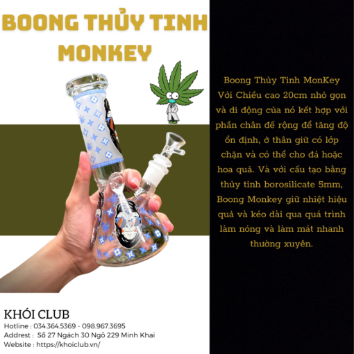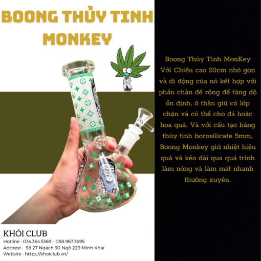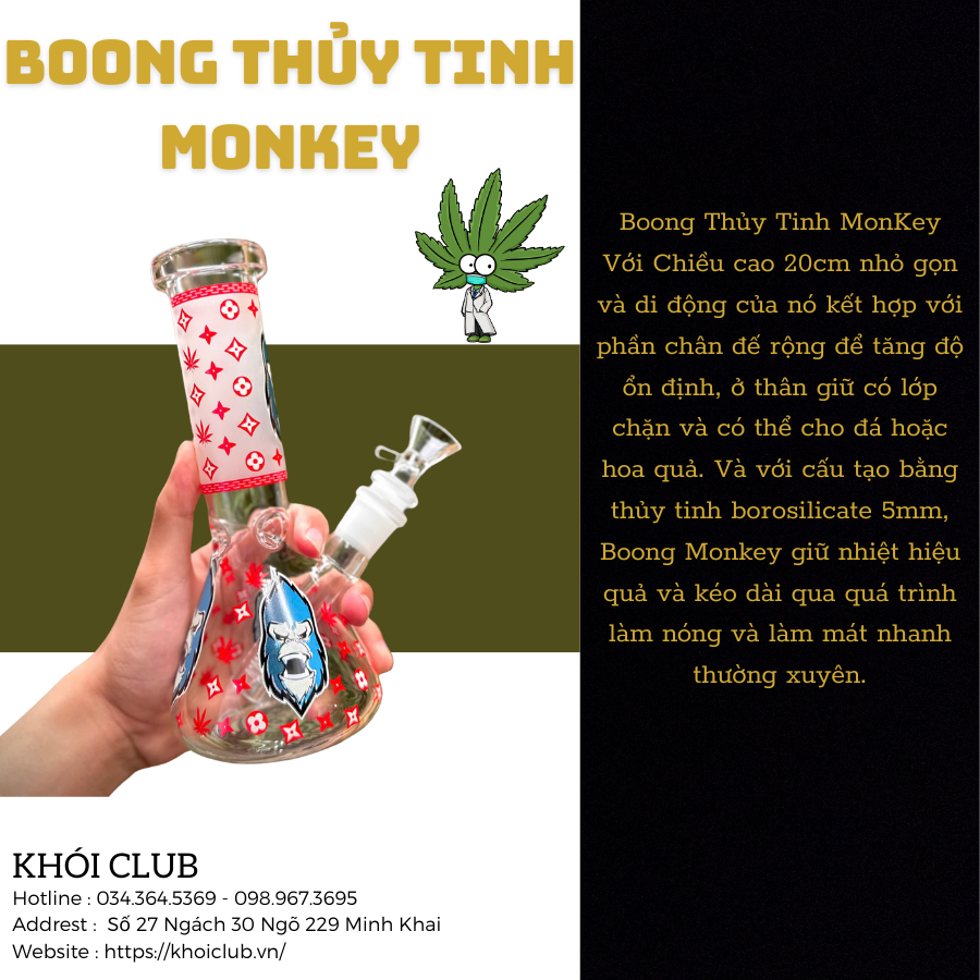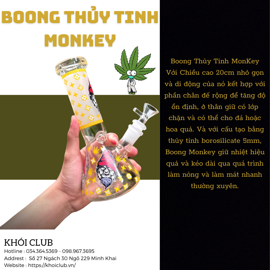 Boong Thủy Tinh MonKey Với Chiều cao 20cm nhỏ gọn và di động của nó kết hợp với phần chân đế rộng để tăng độ ổn định, ở thân giữ có lớp chặn và có thể cho đá hoặc hoa quả. Và với cấu tạo bằng thủy tinh borosilicate 5mm, Boong Monkey giữ nhiệt hiệu quả và kéo dài qua quá trình làm nóng và làm mát nhanh thường xuyên.