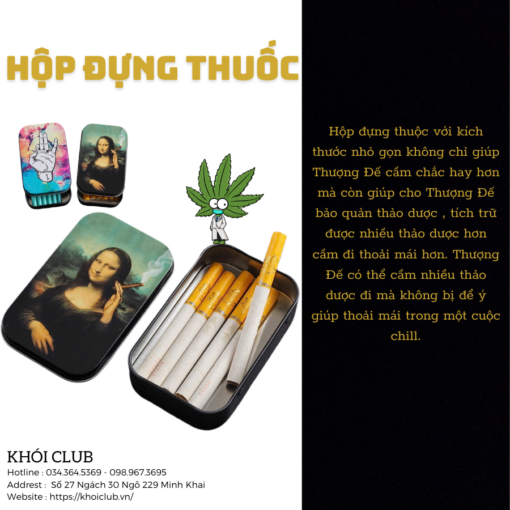 Hộp đựng thuộc với kích thước nhỏ gọn không chỉ giúp Thượng Đế cầm chắc hay hơn mà còn giúp cho Thượng Đế bảo quản thảo dược , tích trữ được nhiều thảo dược hơn cầm đi thoải mái hơn. Thượng Đế có thể cầm nhiều thảo dược đi mà không bị để ý giúp thoải mái trong một cuộc chill.