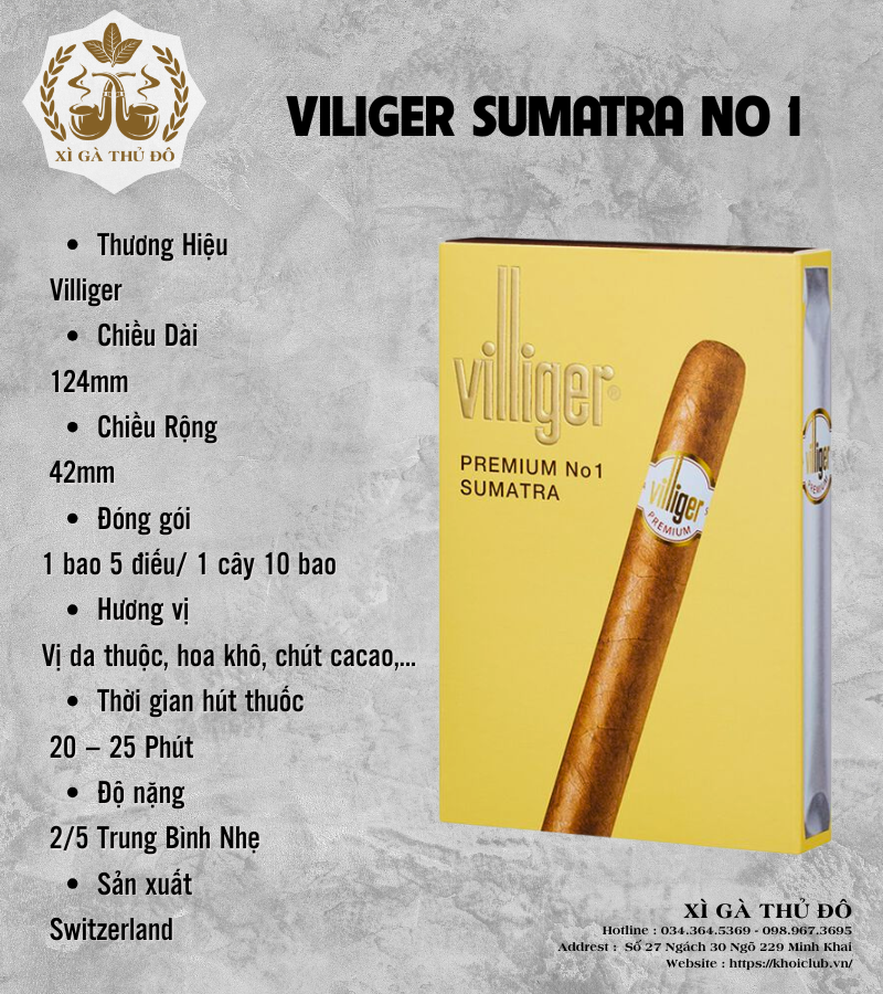 Villiger Premium No.1 Sumatra (Thụy Sĩ): Hương vị da thuộc, hoa khô và chút cacao nhẹ nhàng. Xì gà có độ nặng trung bình nhẹ (2/5), phù hợp với người mới chơi hoặc muốn thưởng thức thư giãn.