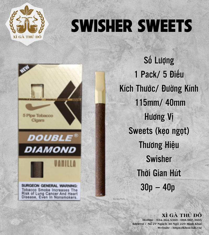 Bộ sưu tập này gồm 6 dòng cigar mini đến từ các thương hiệu nổi tiếng như King Edward, Swisher Sweets và Double Diamond – mỗi loại mang một phong cách riêng, đáp ứng mọi khẩu vị từ nhẹ nhàng, ngọt ngào cho đến đậm mạnh cổ điển.