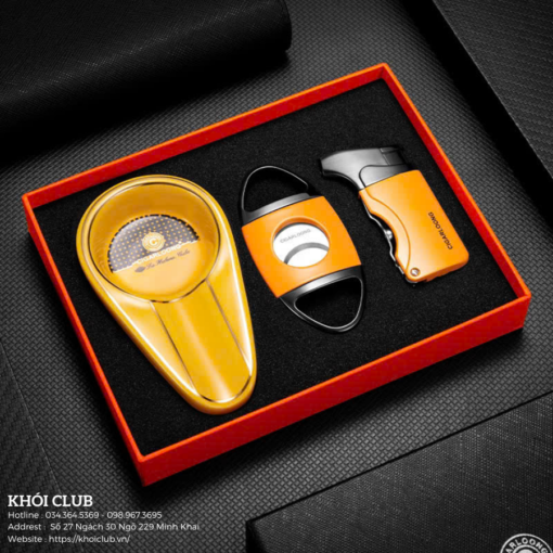 Cohiba là một thương hiệu xì gà hàng đầu thế giới, nổi tiếng với các dòng sản phẩm cao cấp từ xì gà đến phụ kiện. Các sản phẩm của Cohiba luôn gắn liền với sự sang trọng, đẳng cấp và chất lượng vượt trội. Bộ Combo Gạt Tàn, Khò, Cắt Xì Gà Cohiba – GKC 01 không chỉ mang lại sự tiện dụng cho người dùng mà còn là biểu tượng của phong cách sống thượng lưu và đam mê xì gà.