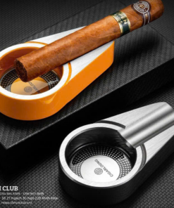 Thiết kế sang trọng: Gạt tàn xì gà trong combo GKC 01 có thiết kế đẹp mắt, thường làm từ các chất liệu cao cấp như kim loại mạ vàng hoặc hợp kim chịu nhiệt, cùng với những chi tiết tinh xảo, mang lại vẻ ngoài sang trọng. Bề mặt gạt tàn rộng rãi, có các khe đặt xì gà được thiết kế phù hợp với nhiều loại xì gà khác nhau, giúp giữ cho xì gà không bị lăn và luôn ổn định trong lúc nghỉ giữa các lần hút.