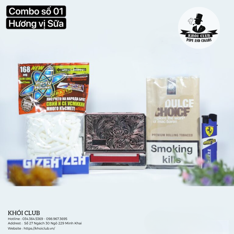 Combo Thuốc Lá Sợi Vị Dulce dành cho người mới bắt đầu chuyển sang hút thuốc lá cuốn bao gồm thuốc sợi cuốn và đầy đủ phụ kiện đi kèm theo.