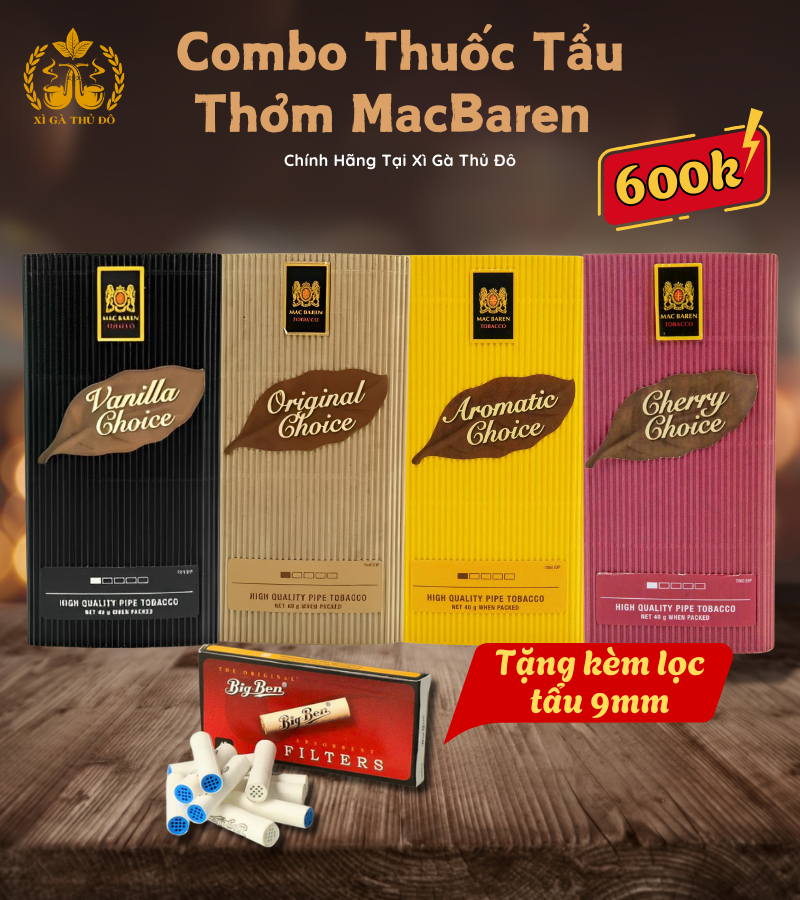 Khi mua Combo Thuốc Tẩu Thơm MacBaren, bạn sẽ được tặng kèm lọc tẩu Big Ben 9mm cao cấp. Lọc tẩu này không chỉ là phụ kiện đi kèm mà còn đóng vai trò quan trọng trong việc nâng cao trải nghiệm hút tẩu: