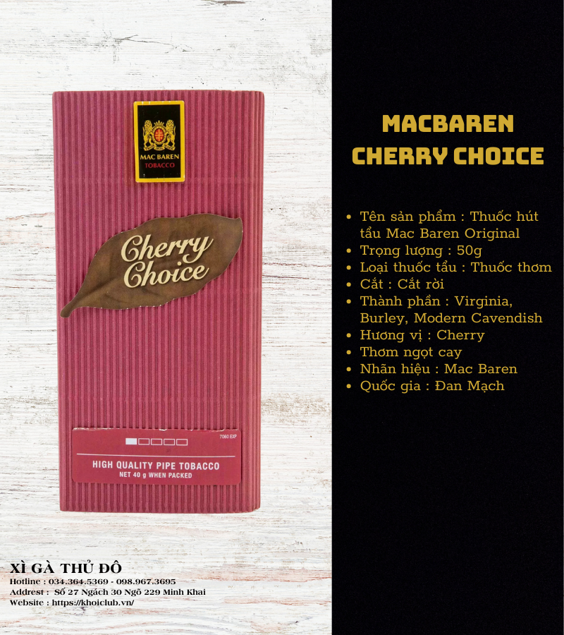 - Cherry Choice là dòng thuốc tẩu mang hương anh đào ngọt ngào, thanh mát và đầy sảng khoái. Đây là dòng thuốc được yêu thích bởi những ai yêu thích hương vị trái cây tự nhiên.