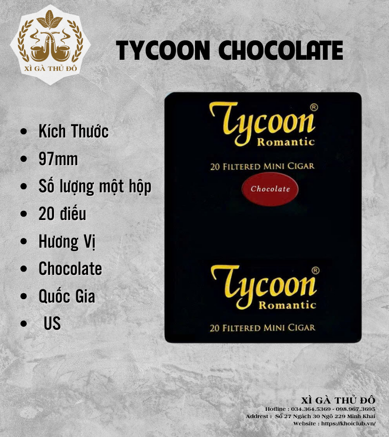 - Tycoon Chocolate: Hương sô cô la ngọt ngào, béo ngậy, mang lại cảm giác sang trọng, dễ chịu