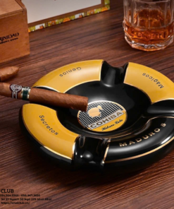 Thiết kế sang trọng: Gạt tàn Cohiba Maduro với màu sắc chủ đạo là đen và vàng, mang lại vẻ đẹp đẳng cấp, phù hợp với phong cách của những người yêu thích sự tinh tế và chuyên nghiệp.