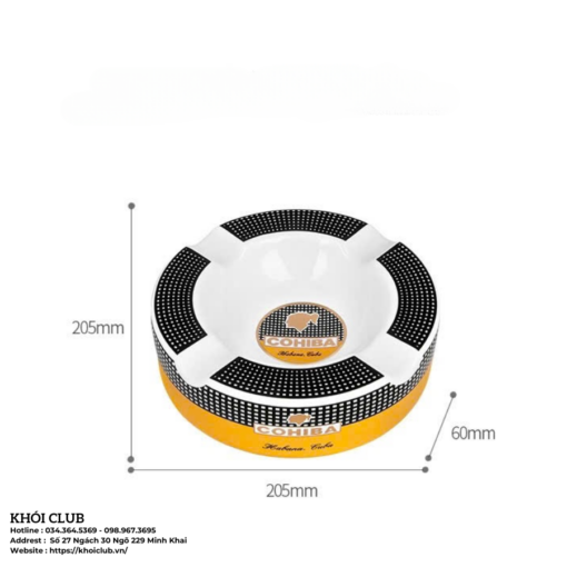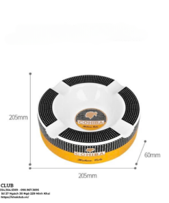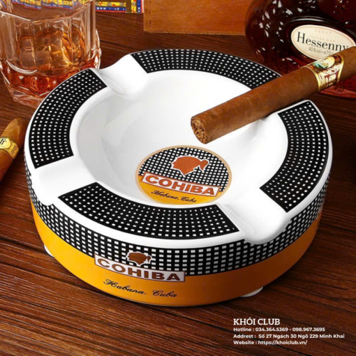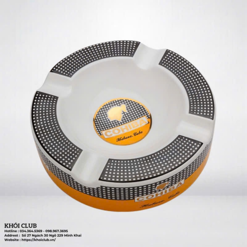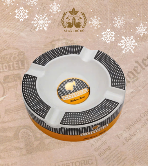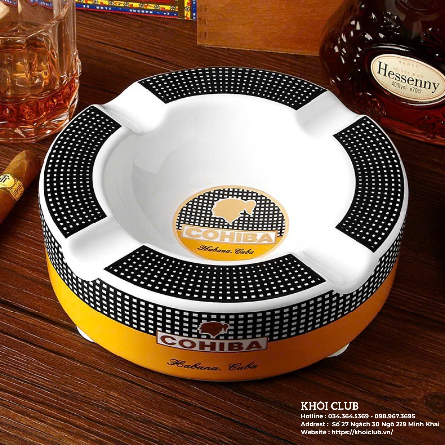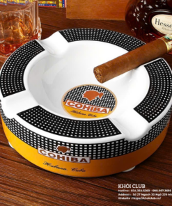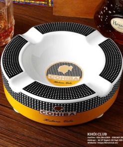 Màu sắc: Gạt tàn thường mang màu đen hoặc trắng chủ đạo, được tô điểm với các chi tiết màu vàng – đặc trưng của thương hiệu Cohiba. Phần logo Cohiba cũng được in hoặc dập nổi sắc nét ở trung tâm sản phẩm, tạo nên điểm nhấn đẳng cấp.