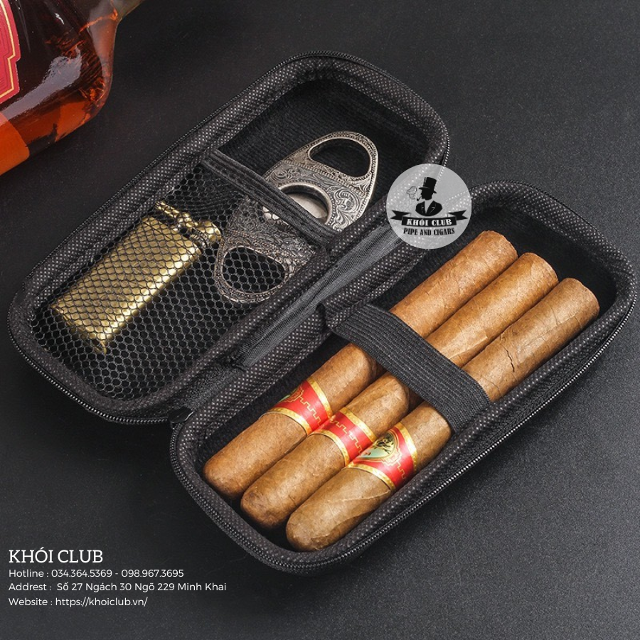 Hộp Đựng Xì Gà chính hãng rất phù hợp để bảo quản 4-5 điếu xì gà để chia sẻ với bạn bè của anh em tại một bữa tiệc, quán bar hoặc mang theo bộ dụng cụ hút xì gà yêu quý của bạn trong một chuyến đi ngắn ngày.
