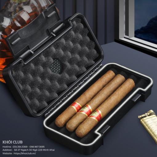 Hộp đựng được thiết kế gọn nhẹ, dễ dàng mang theo bên mình. Nắp hộp khít, có thể mở ra một cách dễ dàng, giúp bạn truy cập nhanh chóng vào xì gà mà không cần mất quá nhiều thời gian. Bên trong, các ngăn đựng được bố trí hợp lý, giúp bạn tổ chức xì gà một cách ngăn nắp.