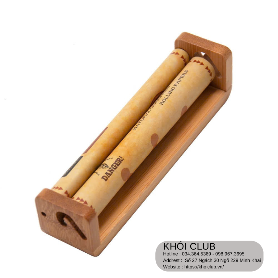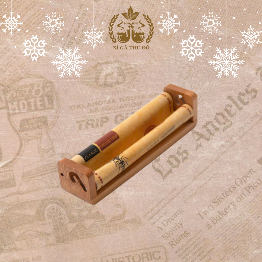 Cuốn Thuốc: Đặt giấy cuốn thuốc vào máy sao cho phần dính của giấy nằm bên trong. Đóng máy lại và xoay các bộ phận cuốn để cuộn thuốc một cách đều đặn.