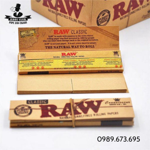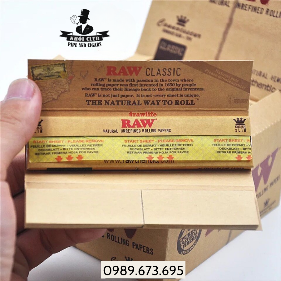 Phiên bản RAW Organic Hemp được làm từ cùng một loại cây gai dầu tự nhiên nguyên chất được trồng theo phương pháp hữu cơ, không chứa clo, không chứa chất phụ gia và được sử dụng trong tất cả các loại giấy Hemp hữu cơ RAW. Giấy RAW được làm từ thực vật tự nhiên không có chất phụ gia gây bỏng.