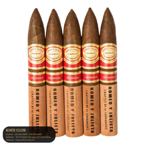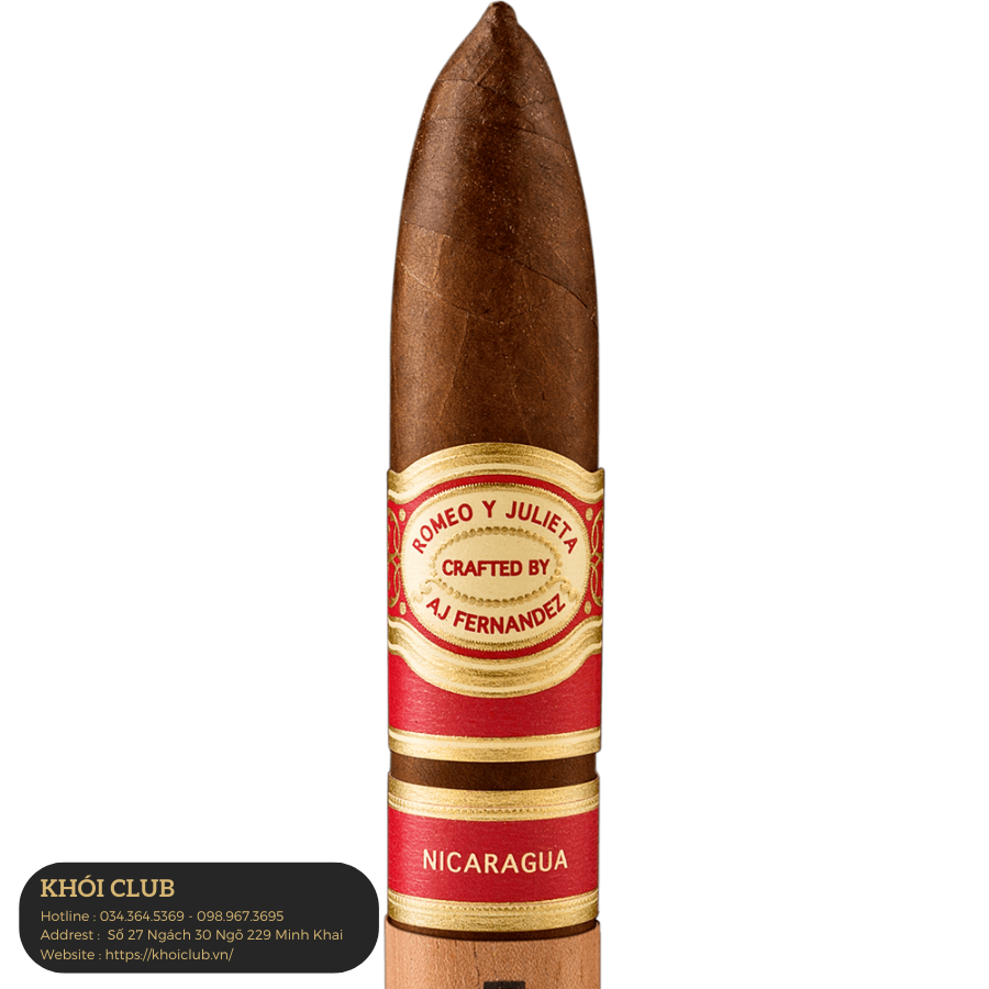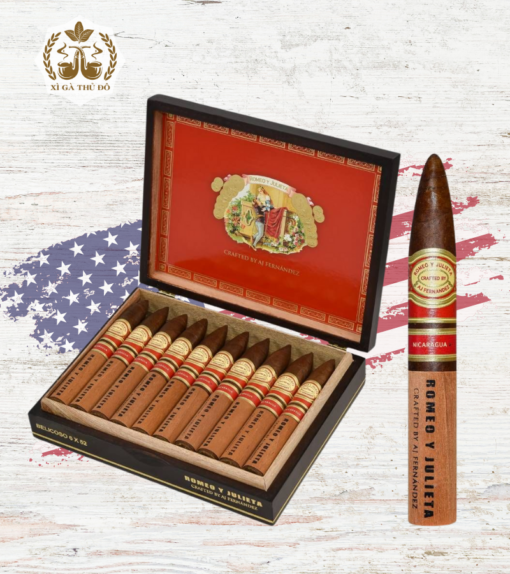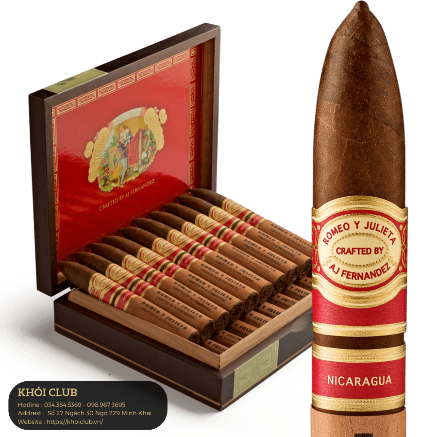 - Romeo y Julieta là một trong những thương hiệu xì gà nổi tiếng nhất của Cuba, được biết đến với chất lượng vượt trội và truyền thống lâu đời trong ngành công nghiệp xì gà. Sự hợp tác với AJ Fernandez, một trong những nhà sản xuất xì gà hàng đầu tại Nicaragua, đã mang đến một biến thể mới mẻ với sự kết hợp giữa chất lượng và phong cách độc đáo.
