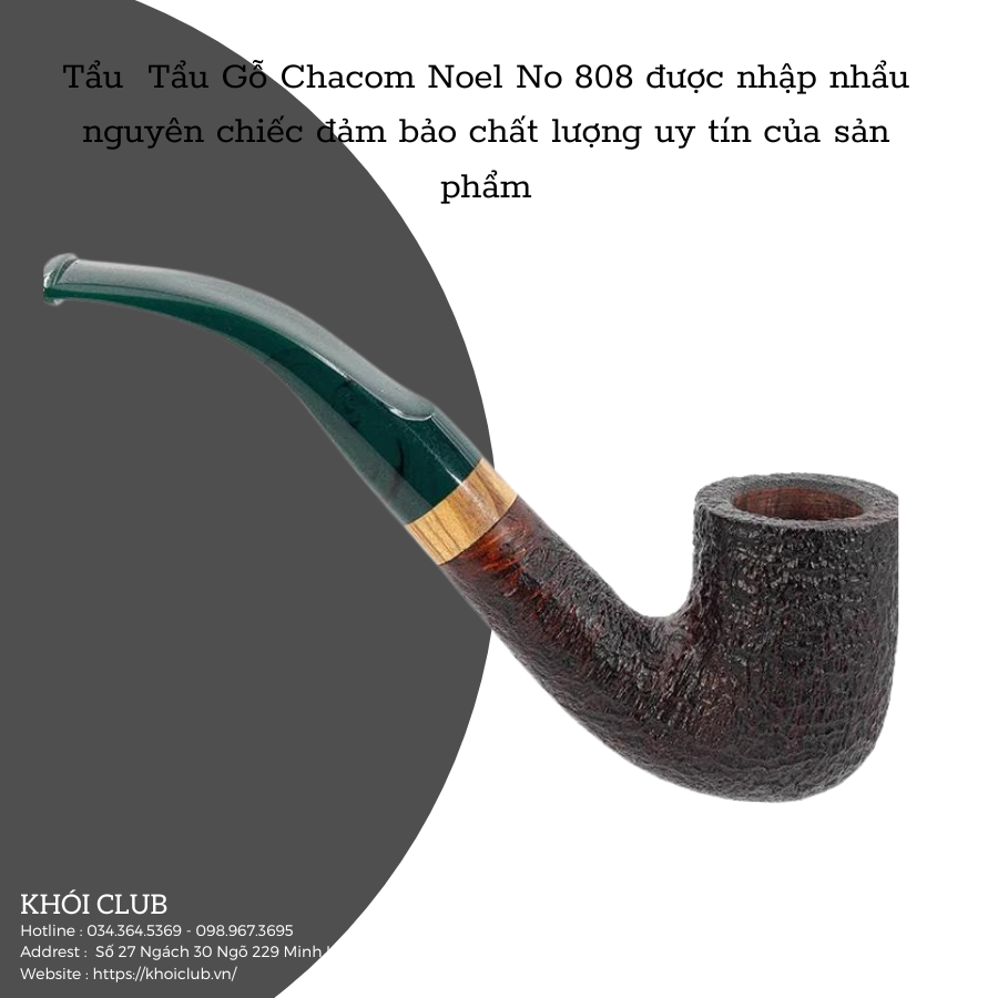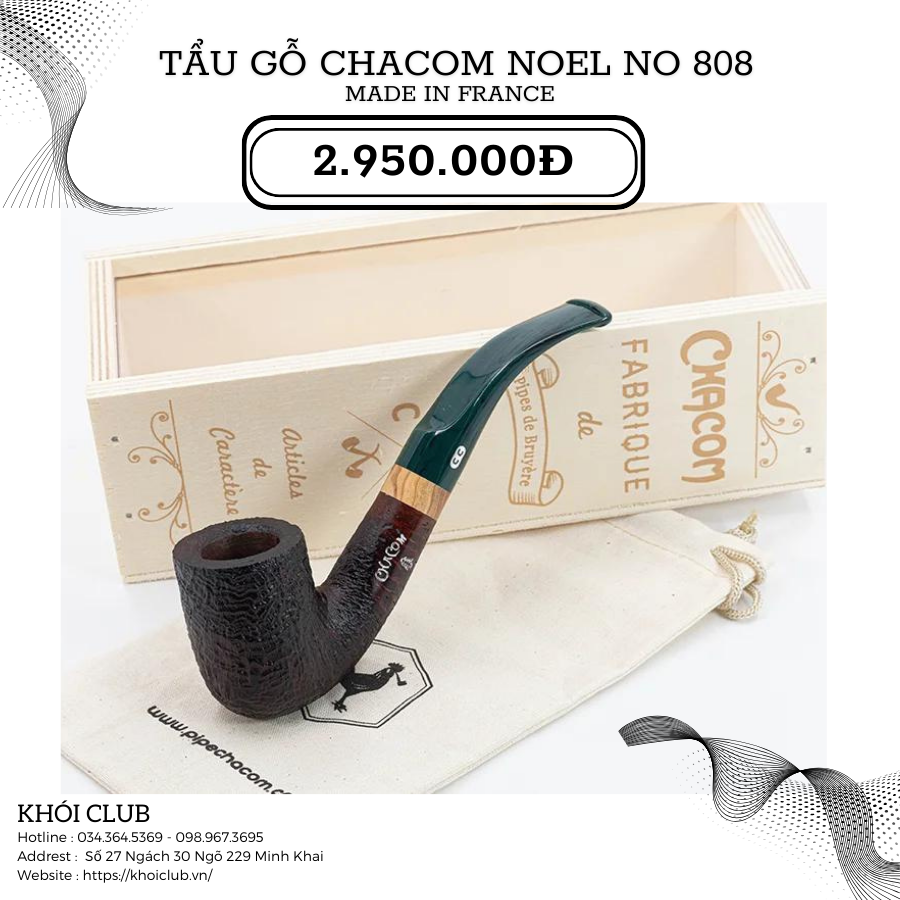 Chacom Noel No 808 được rất nhiều khách hàng đánh giá cao về giá trị thẩm mỹ, độ bền, vẻ đẹp bóng loáng và khả năng thẩm thấu thuốc lá sợi. Với kiểu dáng cong mềm mại và cán tẩu ngắn rất dễ dàng vệ sinh sẽ