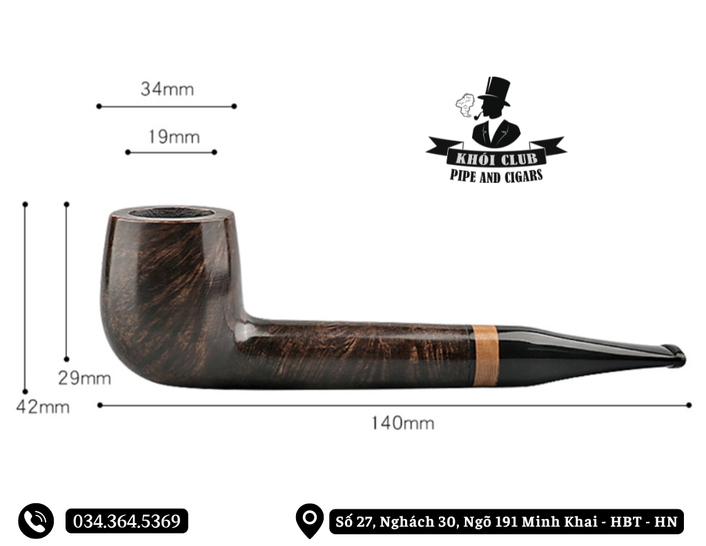 Một sản phẩm tinh tế, thanh lịch, với công nghệ phun cát sáng màu vân, được hoàn thiện một cách tinh tế để lộ ra các vân tự nhiên của Gỗ Birar. Điểm nhấn chính là phần vân nổi bật của gỗ Birar và một sự phối hợp tuyệt vời giữa tẩu và Cán để tạo ra một chiếc Tẩu đẹp và không bao giờ bị lỗi thời.