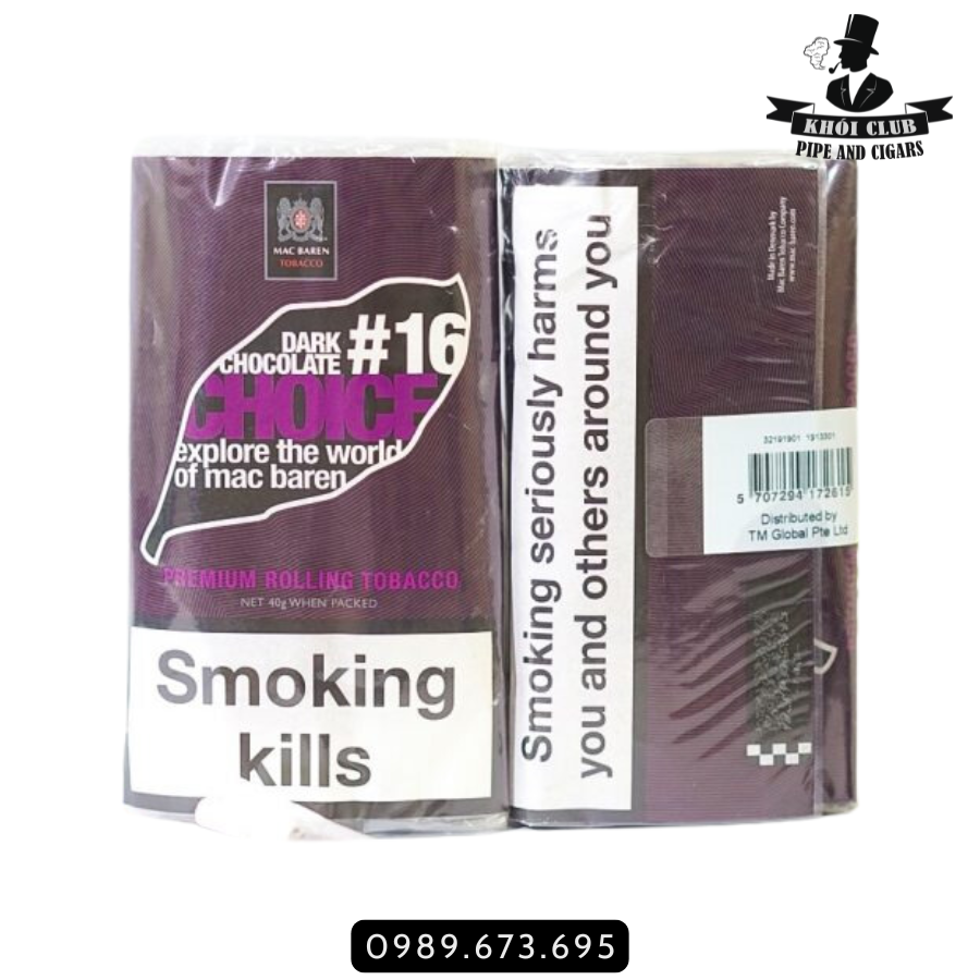 Thuốc lá cuốn tay Mac Baren Dark Chocolate Choice là loại thuốc là tự nhiên tốt nhất đã được kết hợp từ Virginia, Black, Cavendish, Burley hòa quyện giữa socola đen và ca cao tạo thành một hương vị mạnh ngọt ngào. Mac Baren đã kết hợp ra một sản phẩm đặc trưng với hương vị Peterson mềm mượt, dư vị ngậy của socola đen đảm bảo đem đến cho người thưởng thức trải nghiệm hút thuốc tinh tế và thú vị.