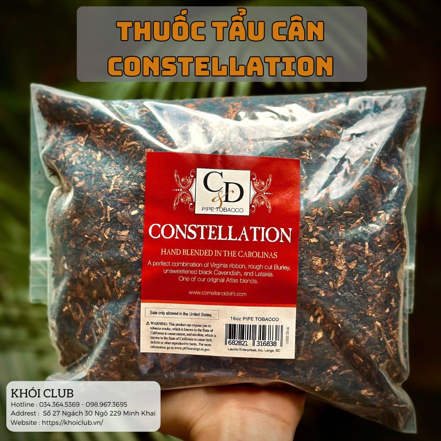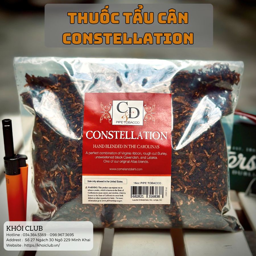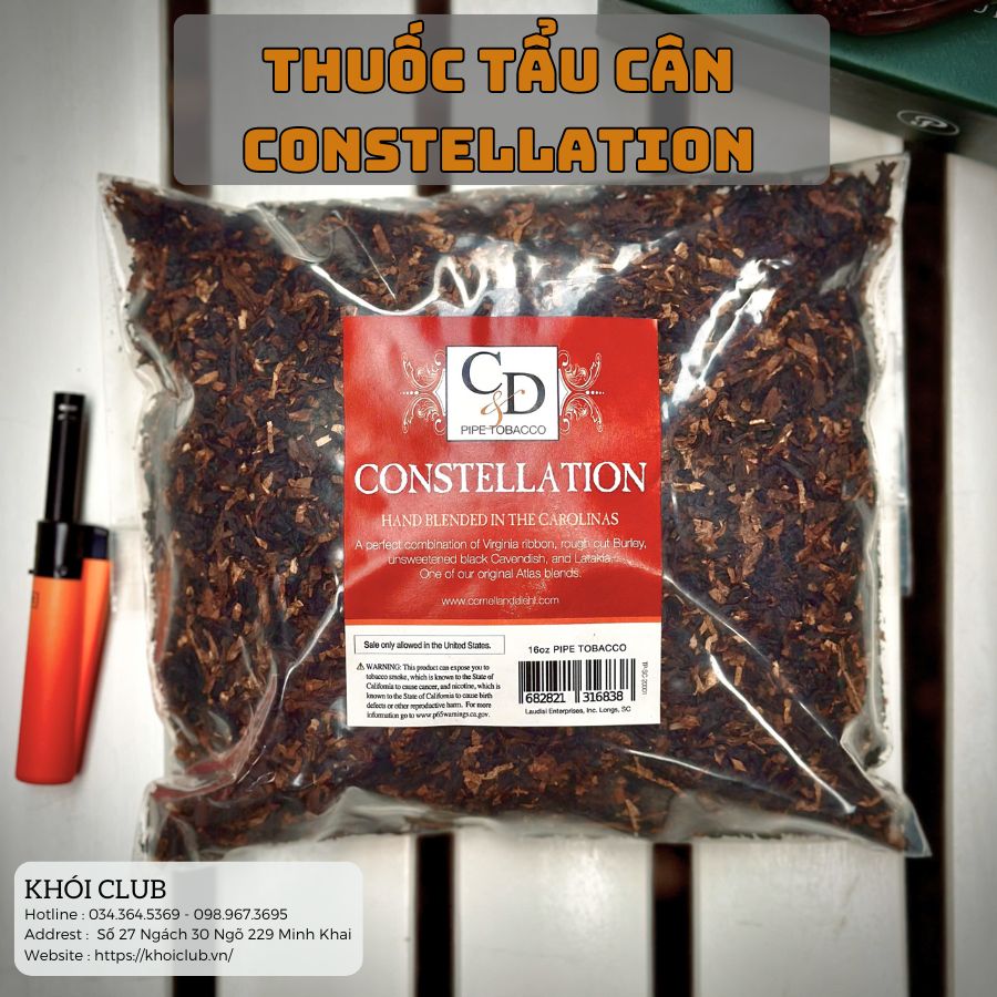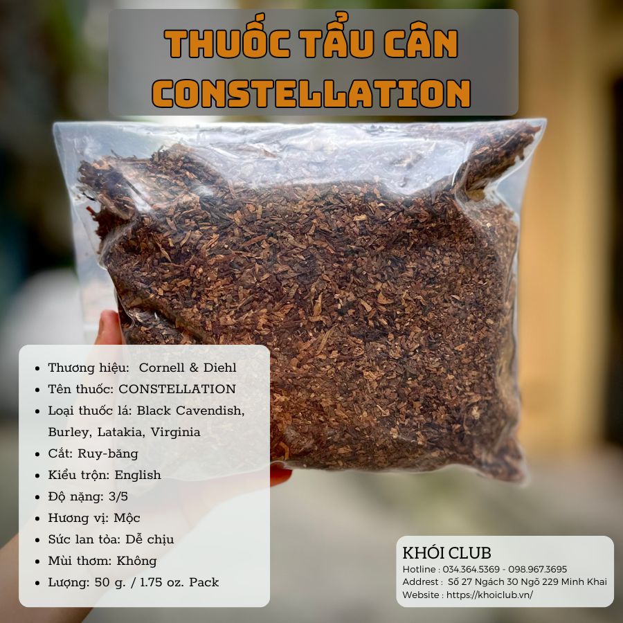 Hình thức: Thuốc tẩu cân Constellation thường được cung cấp dưới dạng hạt nhỏ hoặc xơ thuốc. Sản phẩm có thể có kết cấu hơi ẩm, giúp dễ dàng nén vào tẩu và đốt cháy đều.