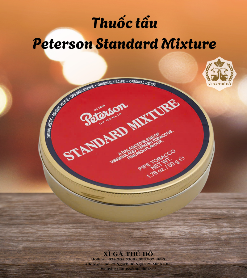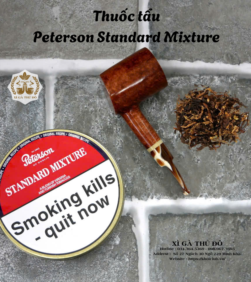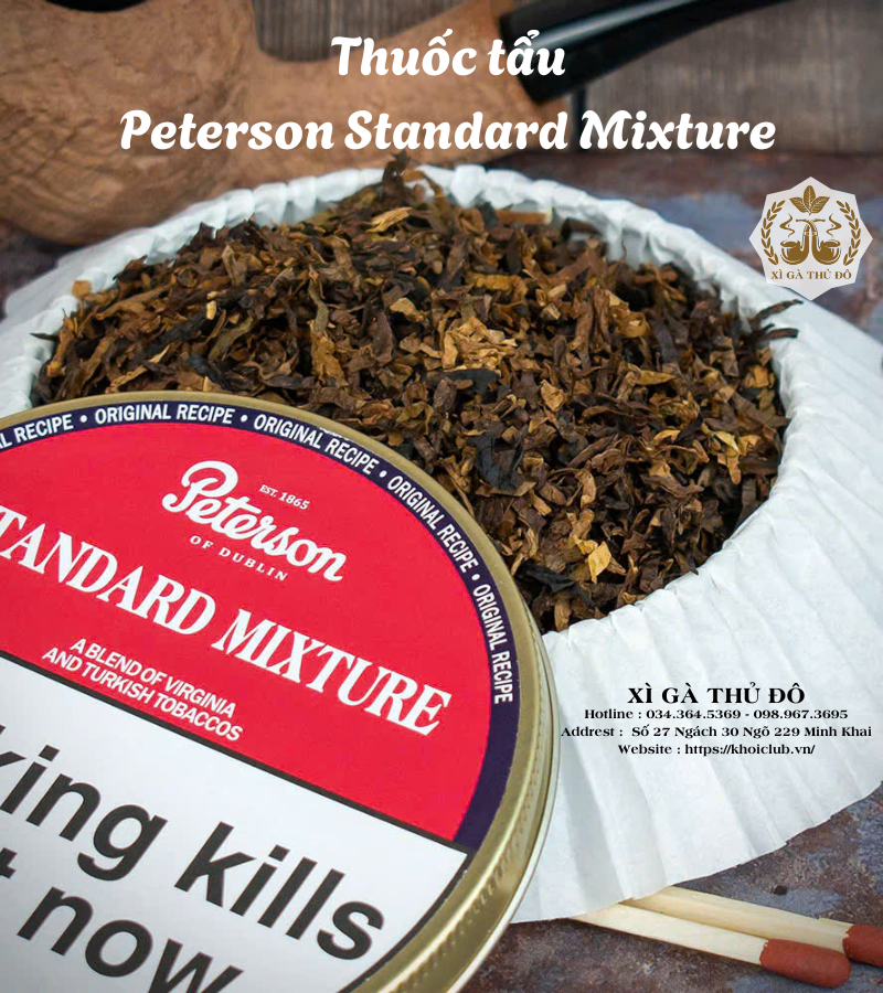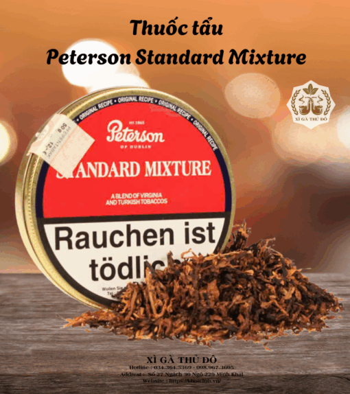Thuốc tẩu Peterson Standard Mixture là sự kết hợp tinh tế giữa các loại lá thuốc Virginia, Oriental (Turkish), và một lượng nhỏ Latakia – một hỗn hợp chuẩn phong cách English Blend.
