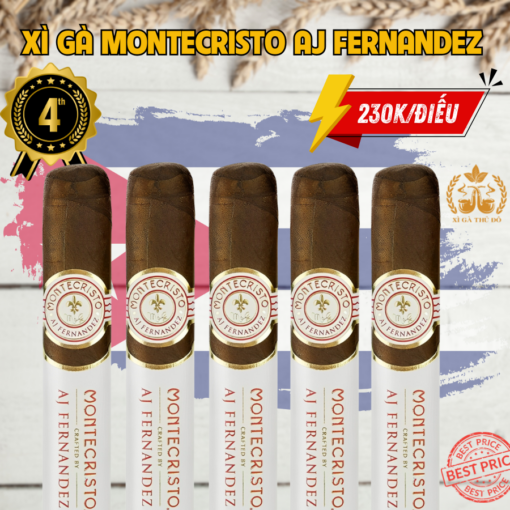 Montecristo AJ Fernandez là kết quả của sự hợp tác giữa hai huyền thoại trong làng xì gà. Hương vị phong phú từ hốt cà phê, sâm và đậu nằm khiến sản phẩm này trở thành sự lựa chọn hoàn hảo cho những ai tìm kiếm sự phá cách và mới lạ. Montecristo AJ Fernandez đem đến những giây phút thư giãn tuyệt vời. Là top 4 trong top 5 Xì Gà Được Yêu Thích Nhất .