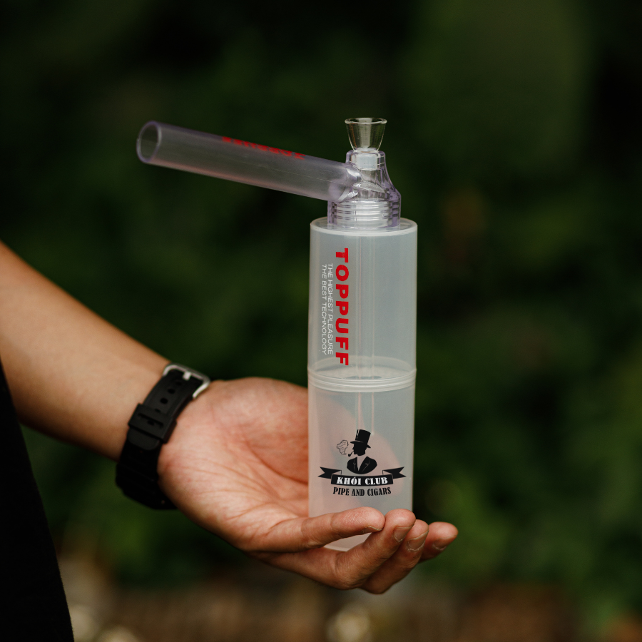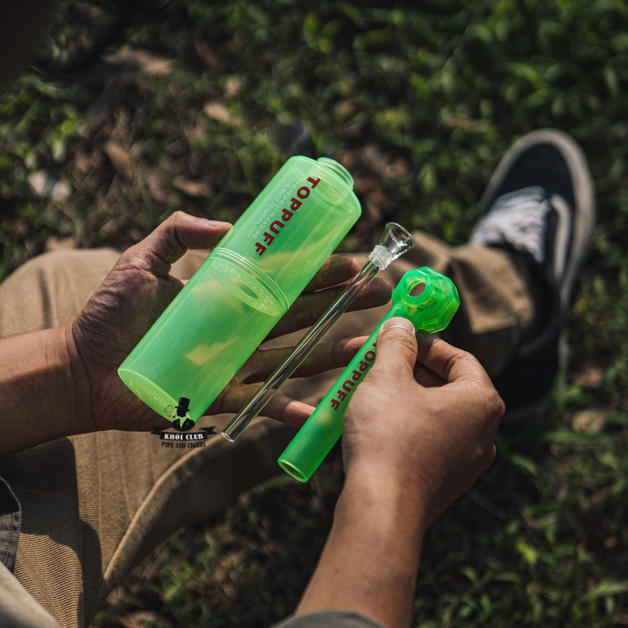 Là phụ kiện hút thuốc không thể thiếu cho anh em, đặc biệt là các anh em hay di chuyển nhiều hoặc thích Chill ở một nơi xa. Bộ Toppuff bao gồm: 1 ống hút nhựa + 1 nõ liền ống nối thủy tinh + 1 bình chứa nước.