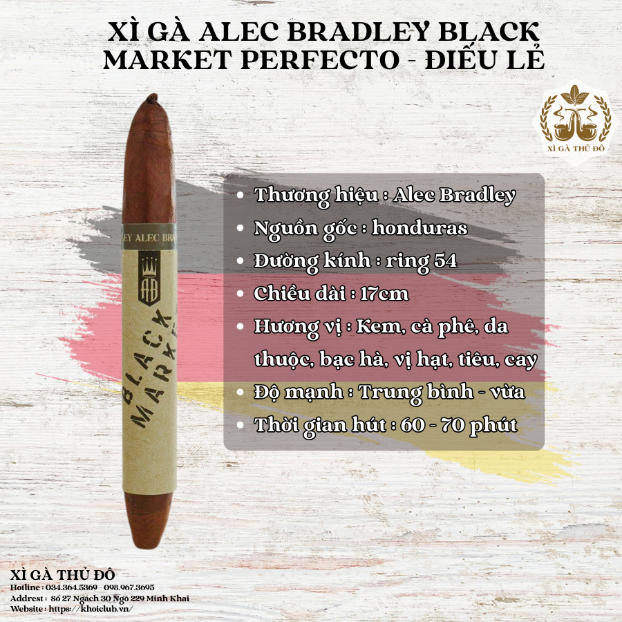 Dòng Xì Gà Alec Bradley Black Market Perfecto được ra mắt lần đầu vào năm 2011 và nhanh chóng trở thành một hiện tượng toàn cầu. Cái tên “Black Market” (Thị trường đen) gợi lên sự tò mò, bí ẩn và có chút gai góc. Alec Bradley đã khéo léo sử dụng hình ảnh những chiếc hòm gỗ cũ kỹ, những con dấu mộc thô sơ để tạo nên một bản sắc riêng biệt, tách biệt hẳn với vẻ truyền thống thường thấy. Sự thành công của dòng này đến từ việc kết hợp hoàn hảo giữa thiết kế tiếp thị thông minh và chất lượng thuốc lá thượng hạng bên trong.