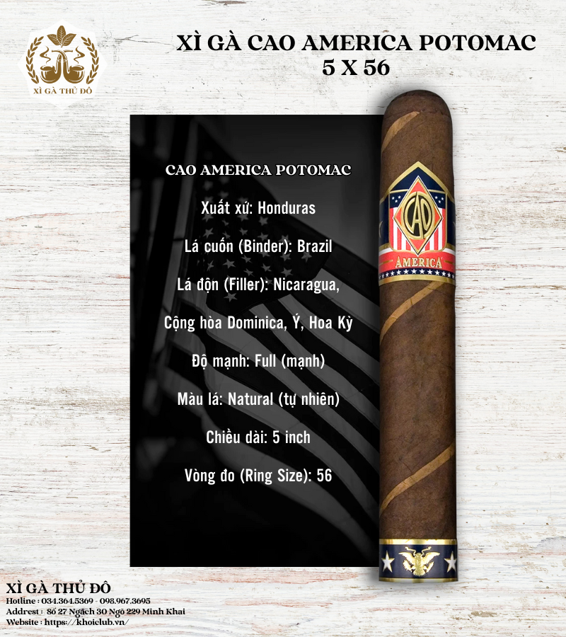 Xì gà CAO America Potomac 5 x 56 là một điếu xì gà dành cho những người yêu thích sự mạnh mẽ và muốn thử thách vị giác của mình.