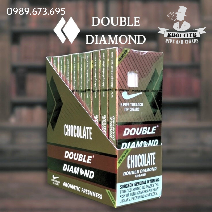 Xì Gà Double Diamond Chocolate là một trong những dòng xì gà mini ,là một thương hiệu xì gà cao cấp, được sản xuất tại Nicaragua với các vùng trồng thuốc lá quý giá nhất. Với bề dày truyền thống và sự kết hợp giữa công nghệ hiện đại và khéo léo của các thợ làm thuốc lá, D Sản phẩm của Double Diamond bao gồm những dòng xì gà cao cấp như Double Diamond Platinum, một sản phẩm với vỏ bọc không gian khoa học và nền lá Nicaragua. Những xì gà này sẽ đưa bạn đến vùng khoảng không của những cơn mưa xế chiều, đầy mê hoặc và thần tiên.