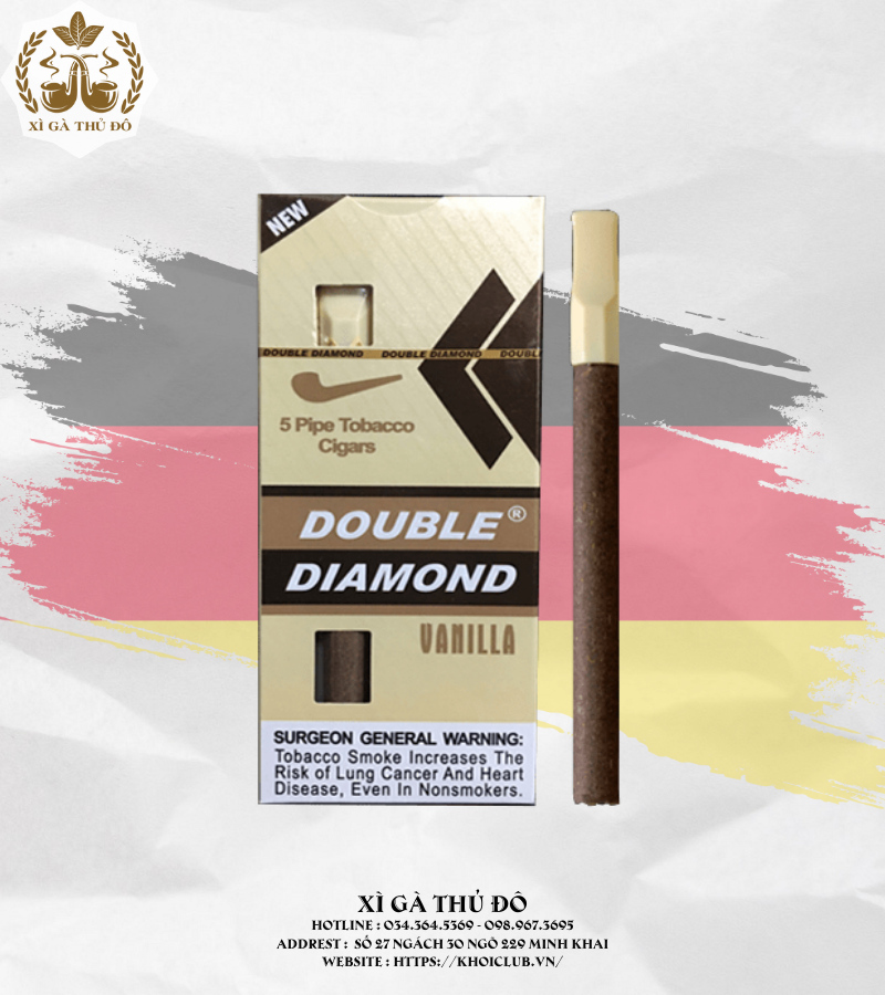 Xì Gà Double Diamond VaniLLA là một trong những dòng xì gà mini ,là một thương hiệu xì gà cao cấp, được sản xuất tại Nicaragua với các vùng trồng thuốc lá quý giá nhất. Với bề dày truyền thống và sự kết hợp giữa công nghệ hiện đại và khéo léo của các thợ làm thuốc lá, Double Diamond đang dần chiếm lĩnh thị trường xì gà với sản phẩm có chất lượng cao và thiết kế độc đáo. Với tên gọi “Double Diamond” (Hai Kim Cương), sản phẩm của thương hiệu này được gói gọn trong bộ sưu tập với các hương vị đa dạng, chất lượng và thiết kế tinh tế. Double Diamond vinh danh sự độc đáo của hương vị Nicaragua và mang đến những điều mới lạ và độc đáo cho những người yêu thích xì gà. Sản phẩm của Double Diamond bao gồm những dòng xì gà cao cấp như Double Diamond Platinum, một sản phẩm với vỏ bọc không gian khoa học và nền lá Nicaragua. Những xì gà này sẽ đưa bạn đến vùng khoảng không của những cơn mưa xế chiều, đầy mê hoặc và thần tiên.