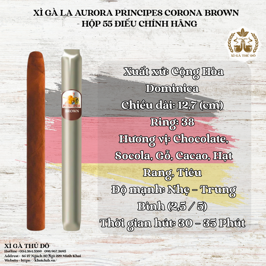 Xì Gà La Aurora Principes Corona Brown – Hộp 55 Điếu Chính Hãng