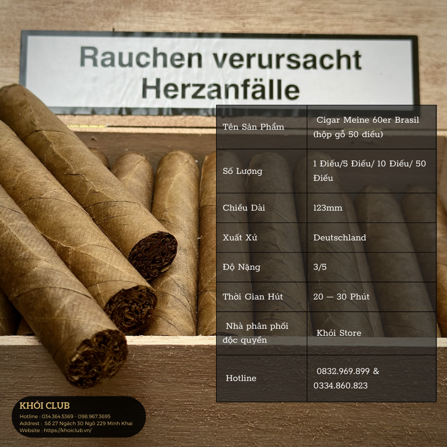 Xì Gà Meine 60er Brasil là một lựa chọn hấp dẫn cho những người yêu thích xì gà cao cấp. Đây là một loại xì gà được sản xuất tại Brazil, nổi bật với chất lượng và sự tinh tế trong từng điếu. Dưới đây là một cái nhìn chi tiết về loại xì gà này, đặc biệt là phiên bản hộp gỗ 50 điếu: