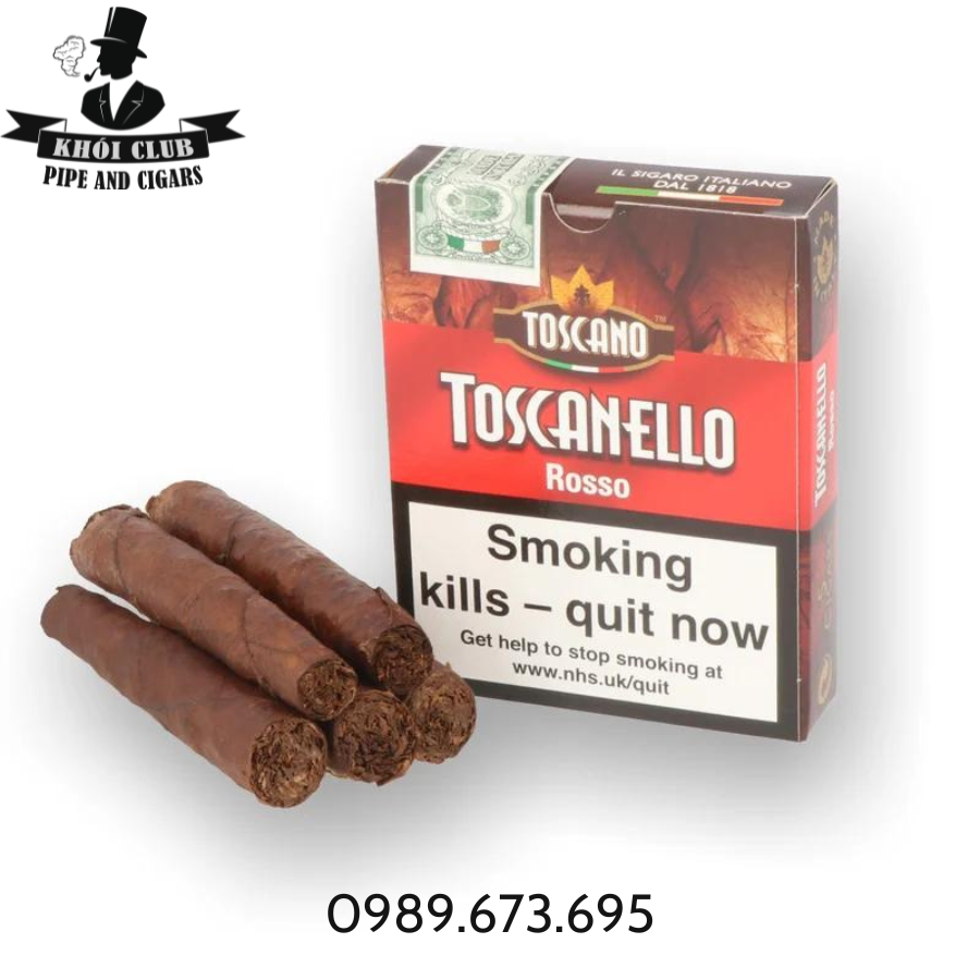 Cigar Mini Toscano Toscanello Rosso Caffe – Xì Gà Sữa Ý Chính Hãng là một loại xì gà nhỏ gọn có hương vị cà phê đặc trưng và được sản xuất tại Ý . Đây là sự kết hợp hoàn hảo giữa hương vị đắng của lá thuốc và hương vị ngọt ngào của cà phê, tạo nên một trải nghiệm thưởng thức tuyệt vời cho người hút xì gà. Không chỉ mang lại hương vị thơm ngon mà còn làm cho người hút cảm thấy sang trọng và đẳng cấp